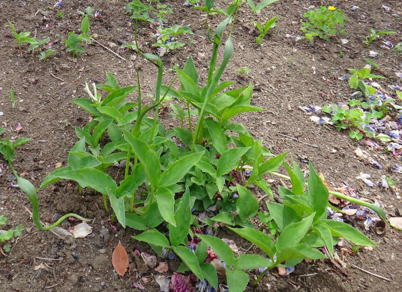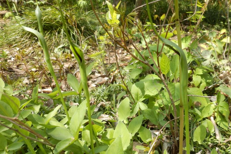 先に長さ5〜6センチで緑色の仏炎苞をのばし、