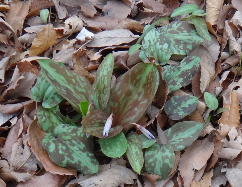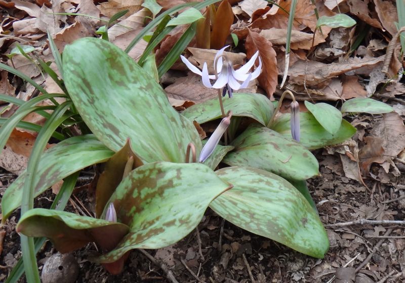 次のは西洋カタクリ(エリスロニウム)で、鹿の子模様が薄く、花は黄色いことが多い。