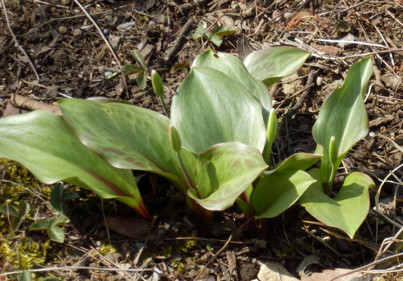 3月〜4月に葉が出るが、樹林の葉が茂る5月上旬には地上部は枯れてしまう。