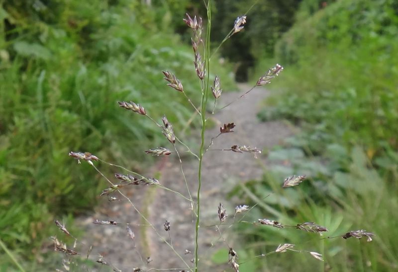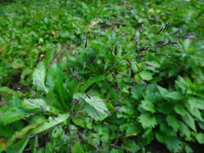 紫色で長さ6〜7ミリの小さい小穂を多数まばらにつける。