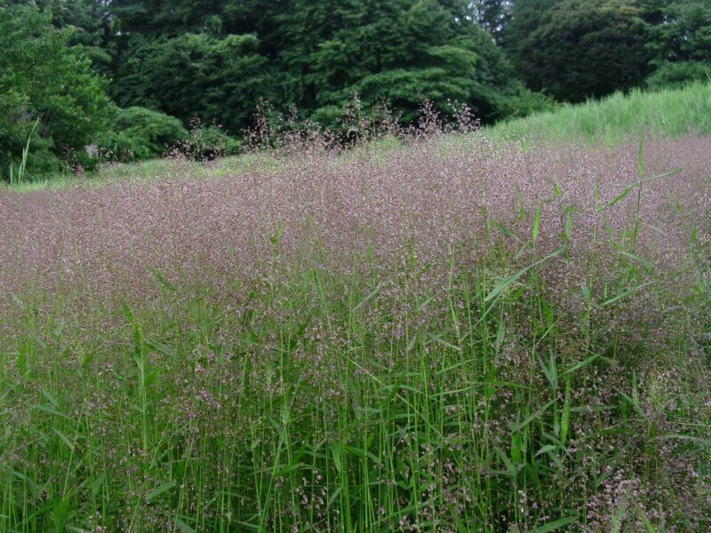 花期に群生したカゼクサによって草原が紫色を帯びる時がある。