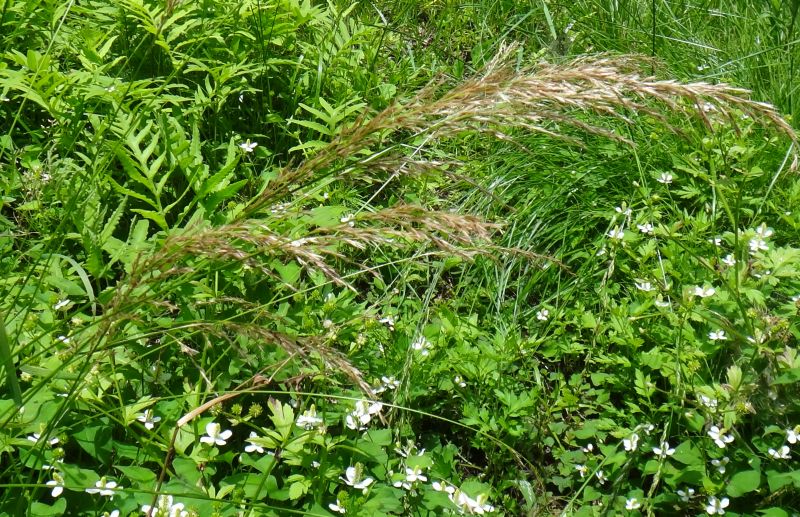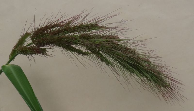 花序は長さ10〜25センチの細長い円錐形で先が垂れ下がり、長い芒を