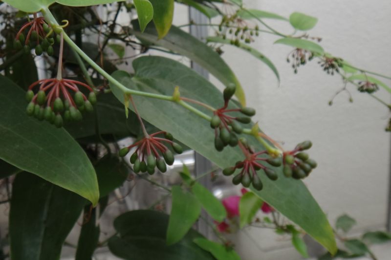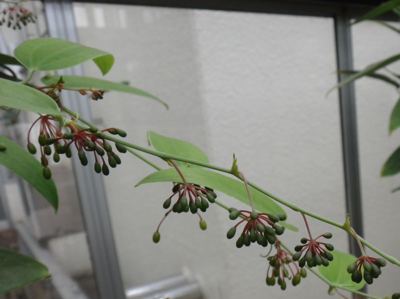 葉腋から出る散形花序に果実が育ち始めている。