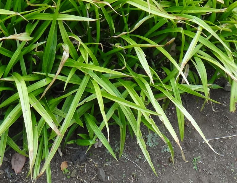 暖地の木陰に生え、地下茎でふえ、叢生する。
