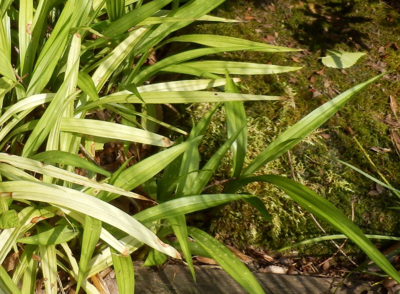 葉は長さ10〜30センチの広線形でつやがあり、根生する。