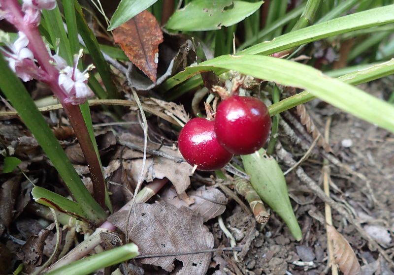 晩秋に直径1センチ弱の赤い球形の液果がなる。