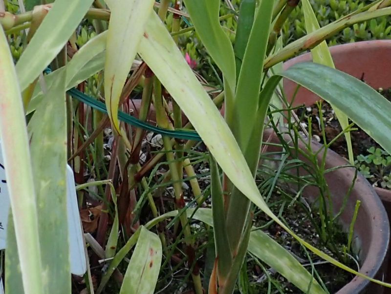 葉は革質の線形で、長さ40〜50センチ、幅15〜20ミリあり、