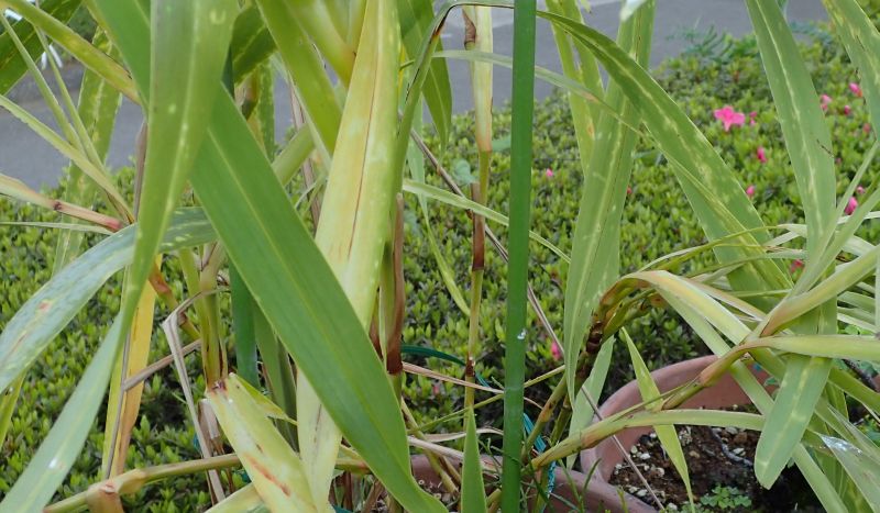 葉に縦縞のある斑入り品種もある。