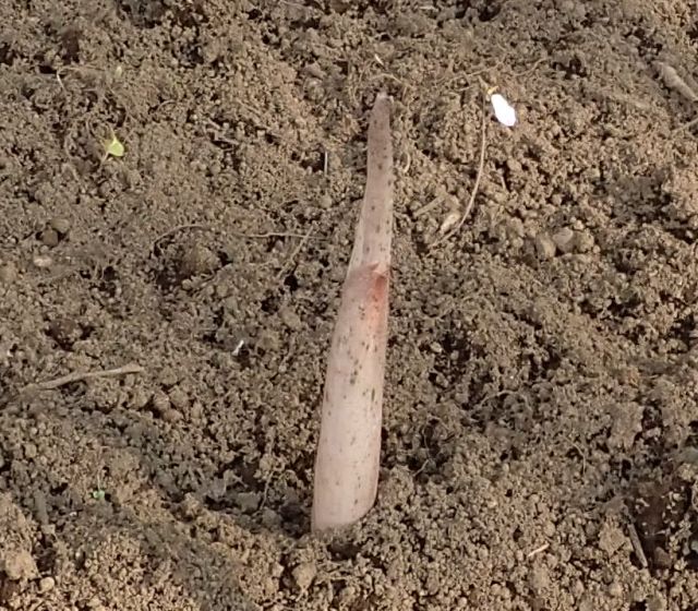 根茎を切って干し、粉にして食用のコンニャクを作る。