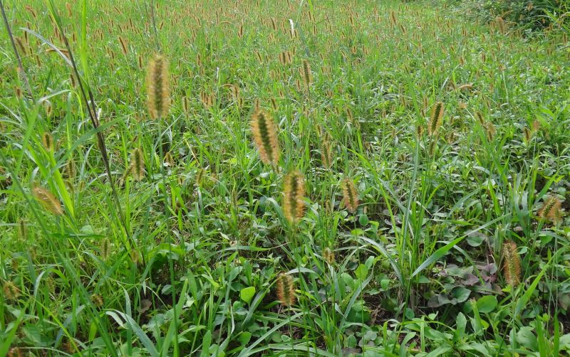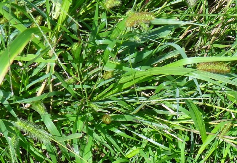 エノコログサ :穂は3〜6センチで先がわずかに垂れ、緑色。葉は無毛。