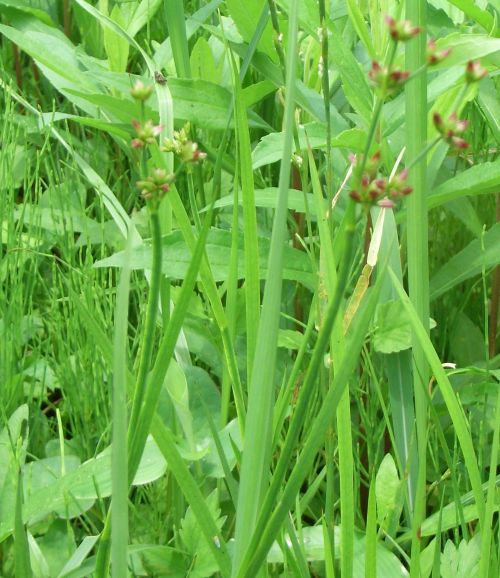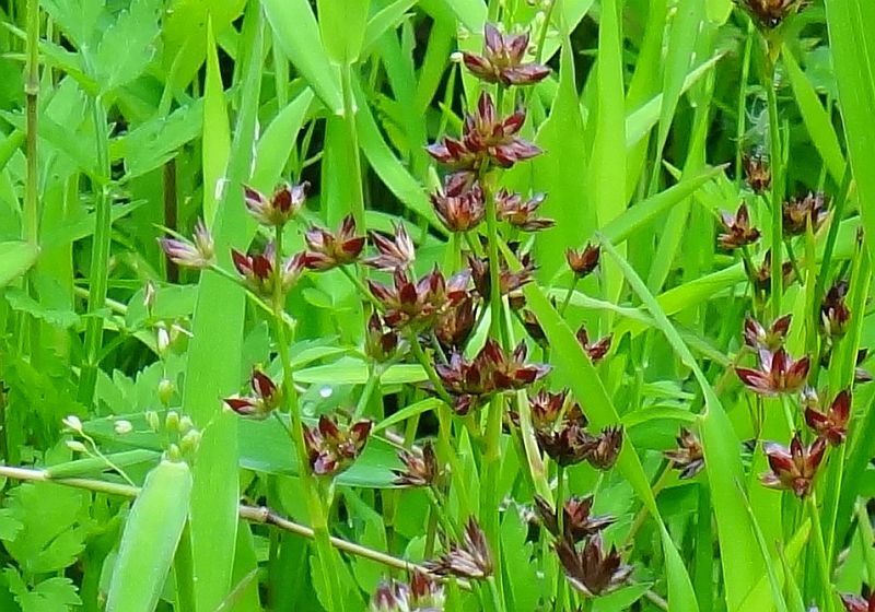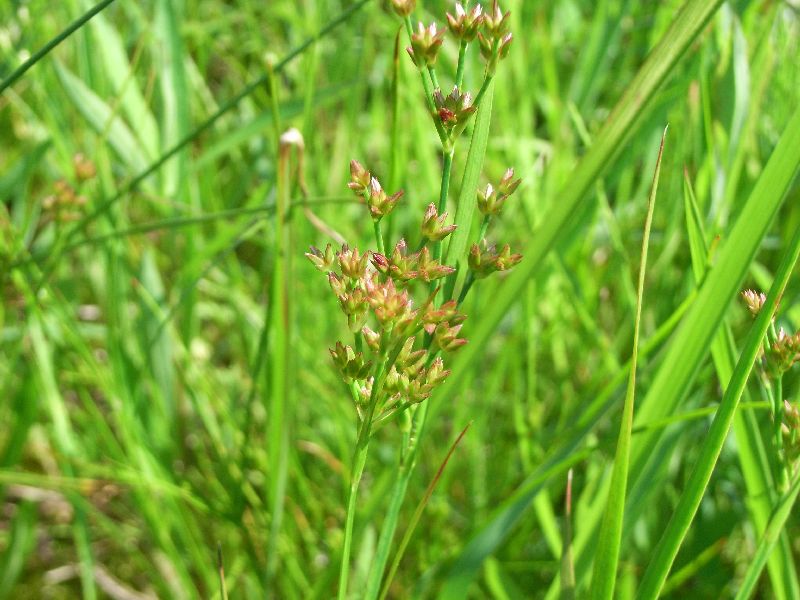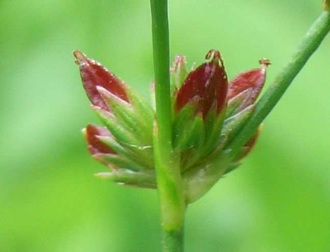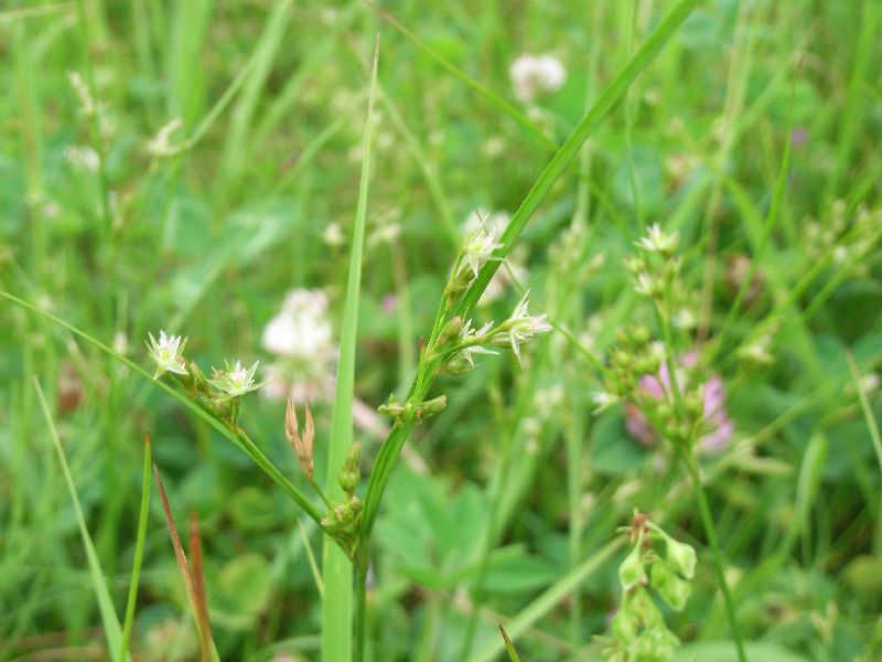 花茎の先に、4〜7個の6弁花が頭状に集まった小穂を集散花序に