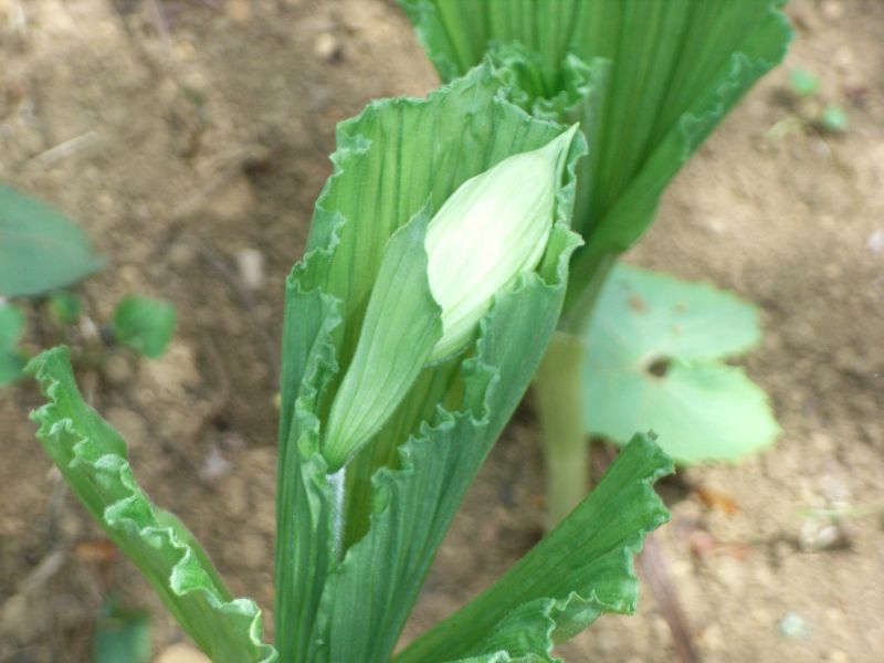 葉は扇状で縦皺がある。
