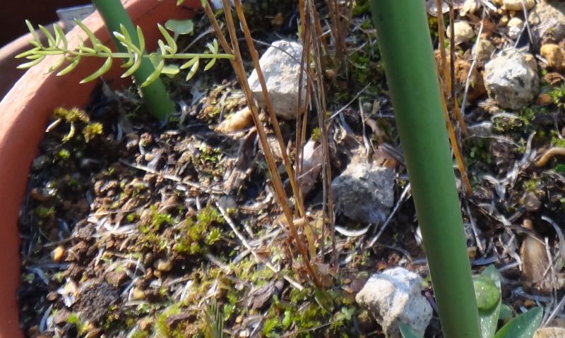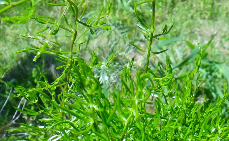 長さ1〜2センチの線形で3稜があり、節ごとに数本出て反り返る。