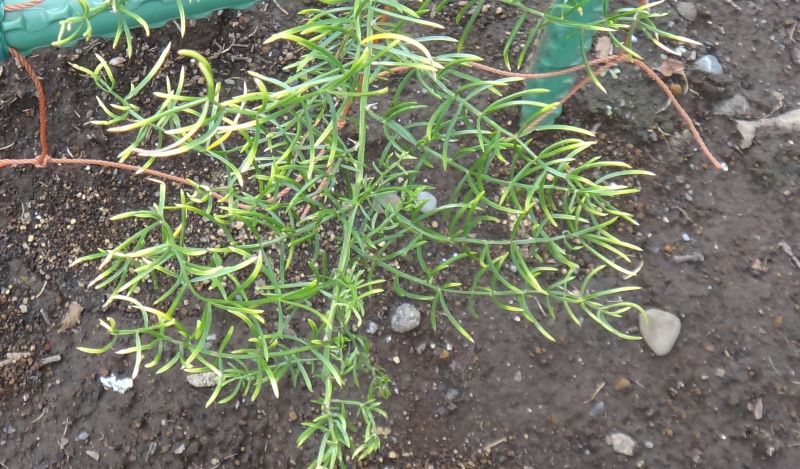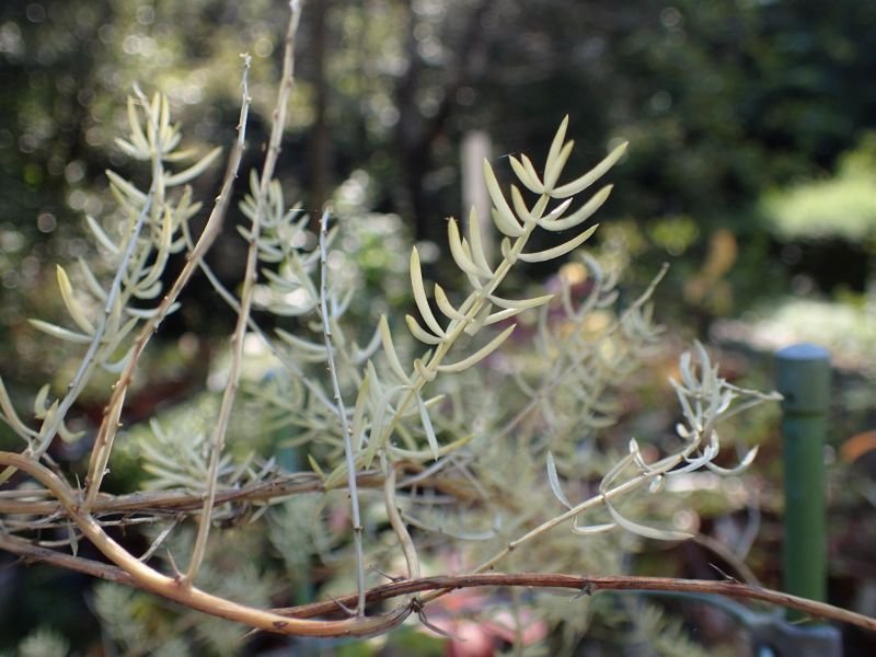 太い枝の葉は棘状、細い枝の葉は膜状に退化していて、