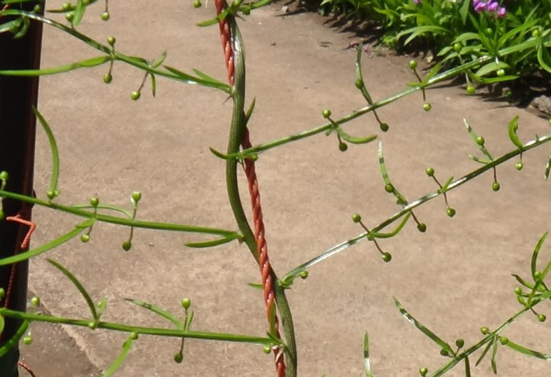 半つる性で、葉のように見えるのは緑色の葉状枝。(2016/4/29)