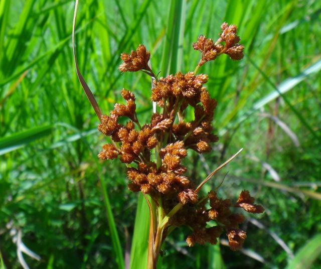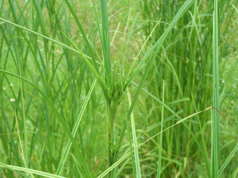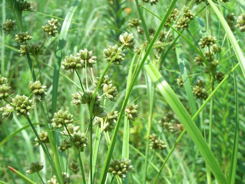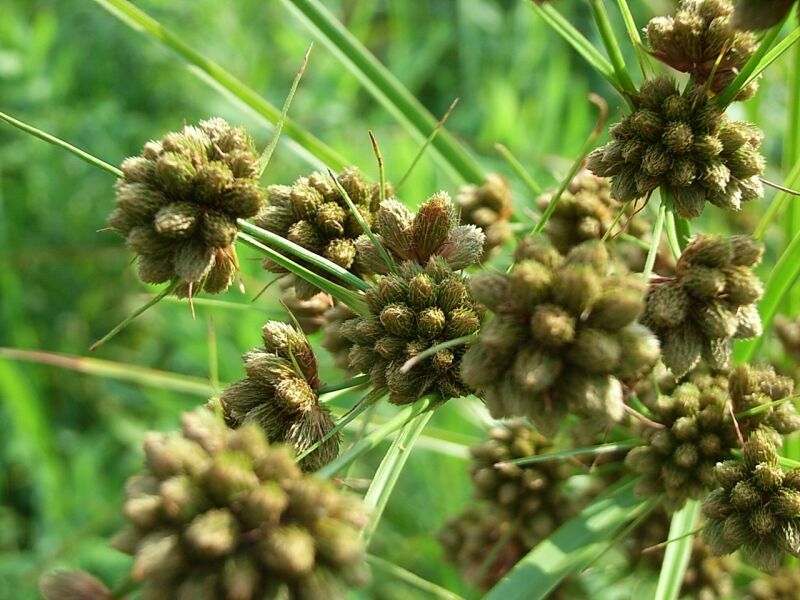 その先に10〜20個の小穂が球状にかたまった花穂をつける。