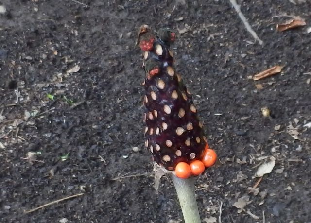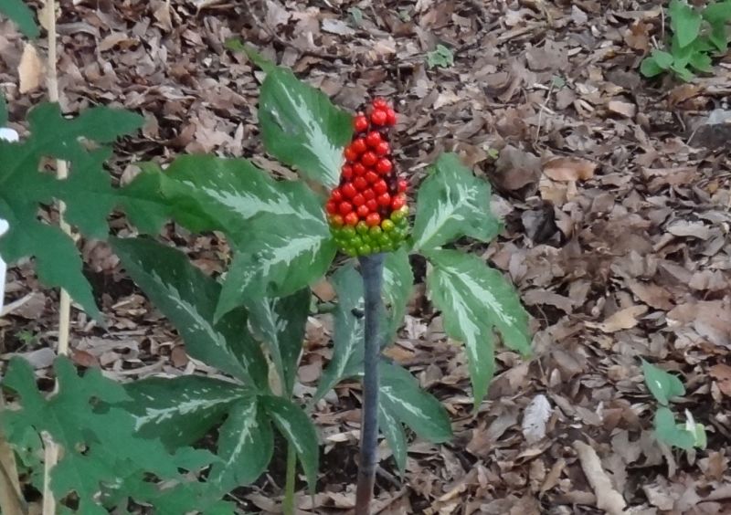 それが上から順々に赤くて丸い液果に変ってゆく。