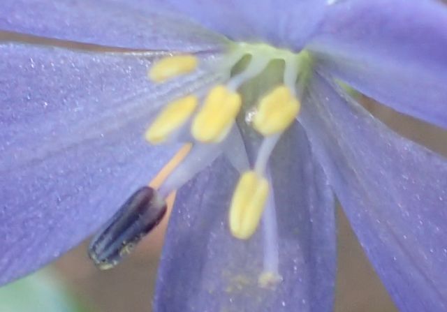 1本は葯が青紫色で花糸に鉤状の突起がある。