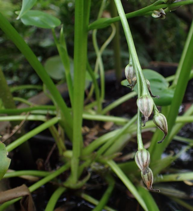 熟すと茎が倒れ、しばらくして果実が水底に沈んで裂開し、