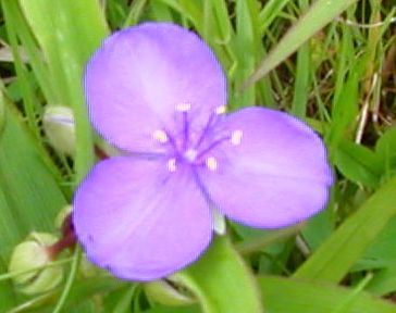 ムラサキツユクサ:花弁は紫色で3枚、花茎約2〜2.5センチ、高さ50〜60センチ。