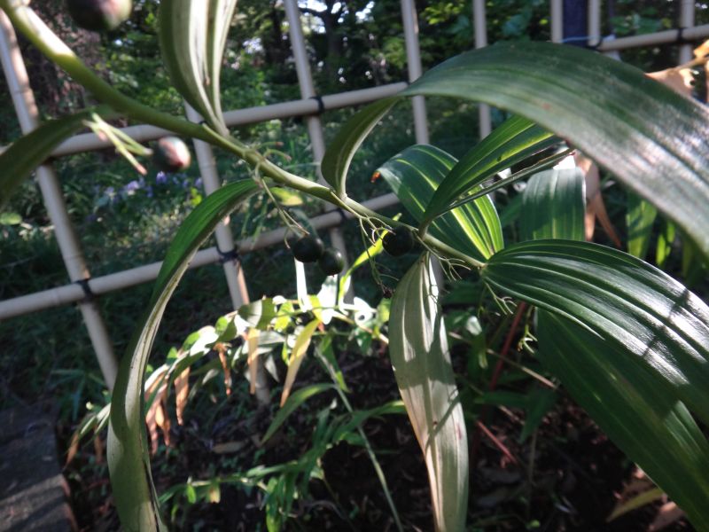 直径0.7〜1センチの球形の液果が黒紫色に熟す。