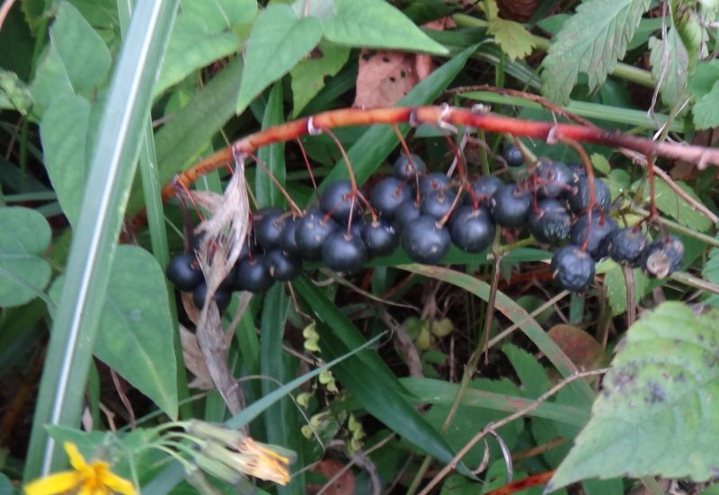 果柄の先に丸い液果が数個ずつ黒く熟す。(2015/10/19)