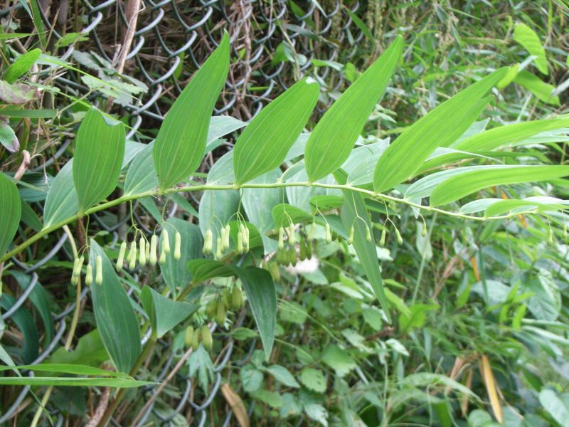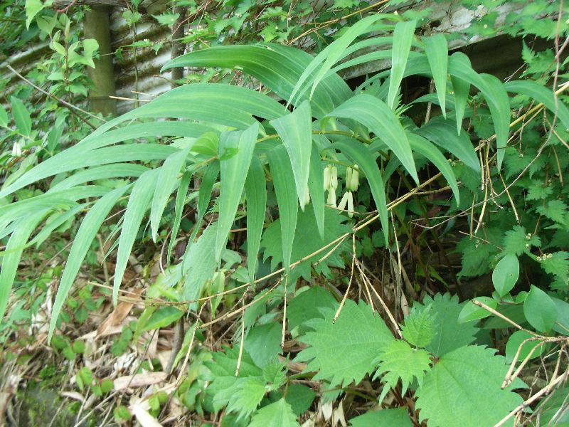 アマドコロ :筒状花が1〜2個ずつ垂れる、花弁は合着、茎は弓形で丸くて滑らか、節間が長い、葉幅は2〜5センチ、高さ30〜50センチ。