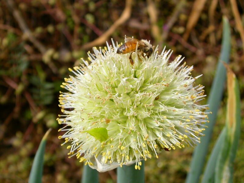 その先に 200〜300個の白緑色で鐘形をした6弁花が散形状(球状)に咲き、