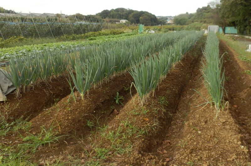 土寄せして白い部分を長くしたネブカネギをつくる。