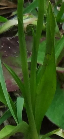葉は先のとがった長さ5〜20センチの倒被針形であり、やや厚めで、