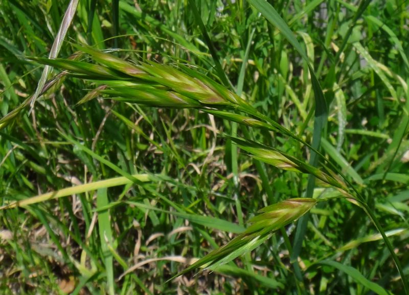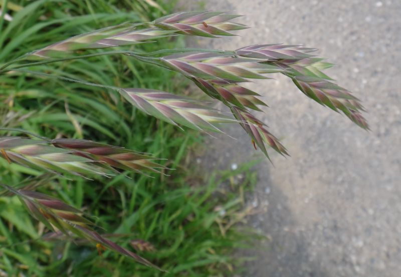 小穂は長さ3〜3.5センチもあり、扁平で、6〜10個の小花を含み、