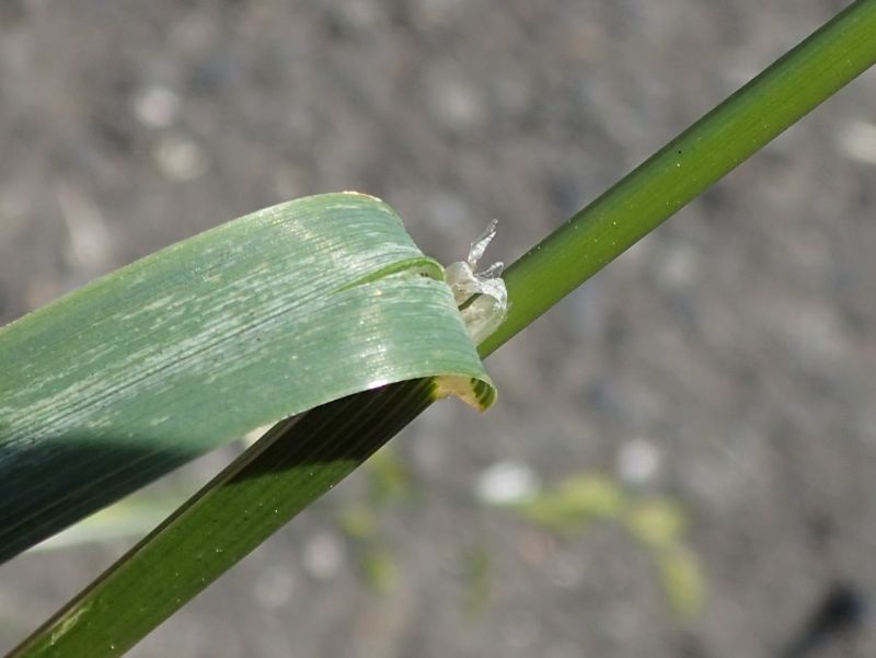 葉は幅0.7〜1.2センチの線形で無毛であり、長さ約5ミリの半透明な葉舌がある。