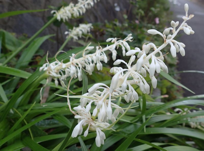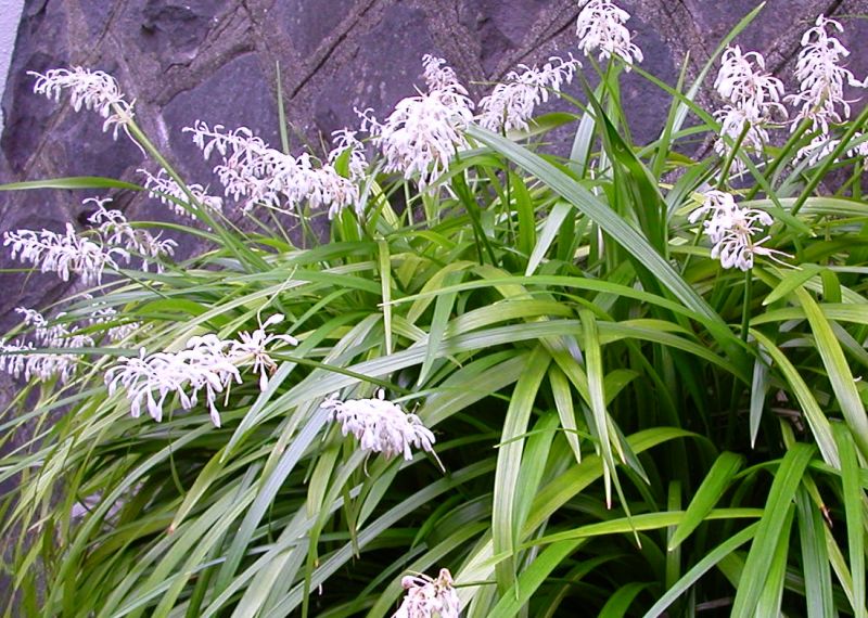 ジャノヒゲ属、球根植物、常緑、多年草。
