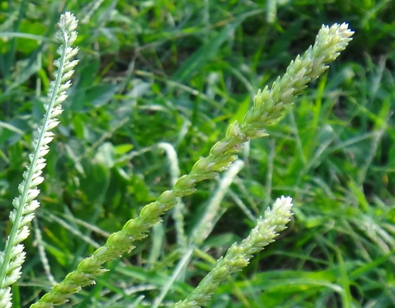 小穂は長さ3ミリ強で、花序枝の下側に密生する。(2015/8/8)