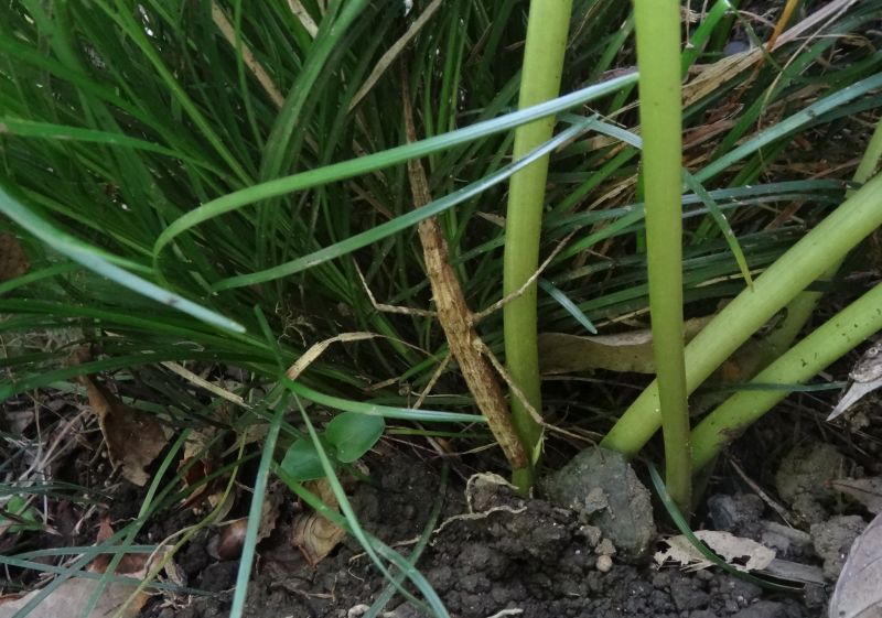 球茎から葉柄と花茎が立ち上がる。(2016/10/15)