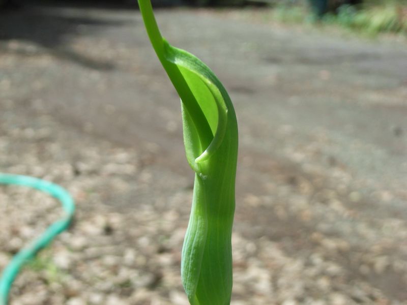 葉の展開とほぼ同時に球茎から高さ20〜50センチの花茎が立ち上がり、