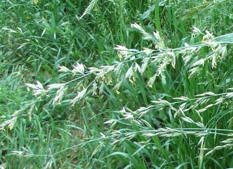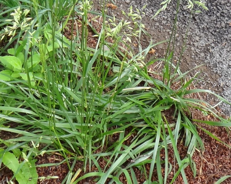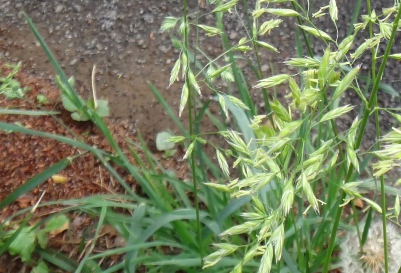 イチゴツナギ :高さ50〜70センチ、花茎は直立しとてもざらつき、小穂は淡緑色。