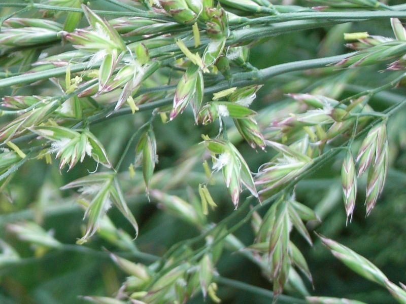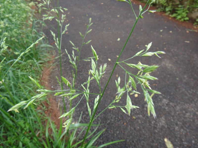 花序は垂れ下がり、花序の枝はざらつく。芒はない。