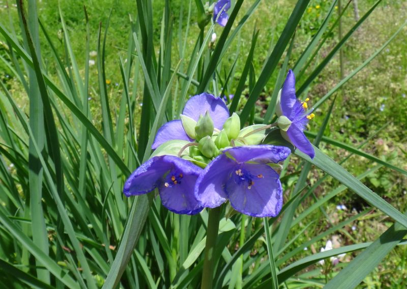 ムラサキツユクサ:花弁は紫色で3枚、花茎約2〜2.5センチ、高さ50〜60センチ。