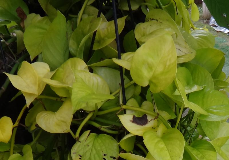 エピプレナム属、常緑(5度以上の暖地か室内)、つる性、多年草。