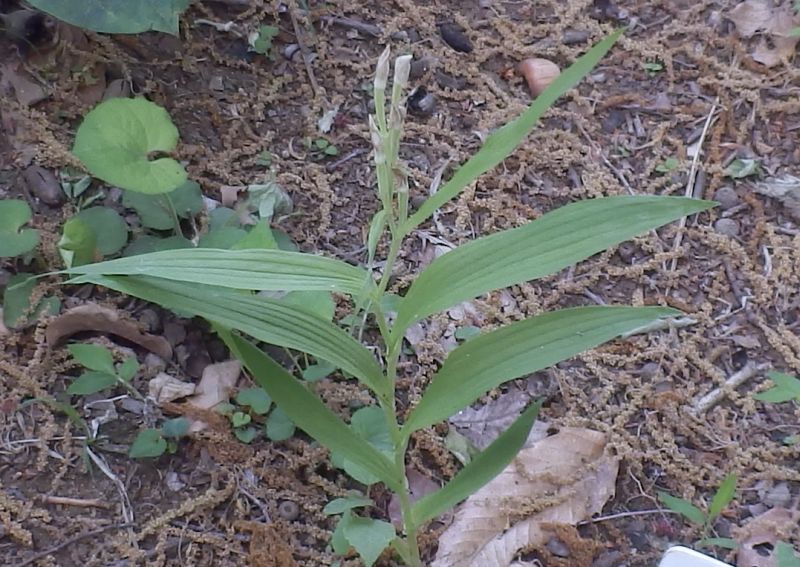 広披針形の葉が茎の中程につき、