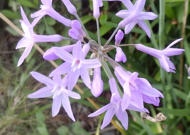 高さ30〜50センチの花径が直立し、茎先の散形花序に、