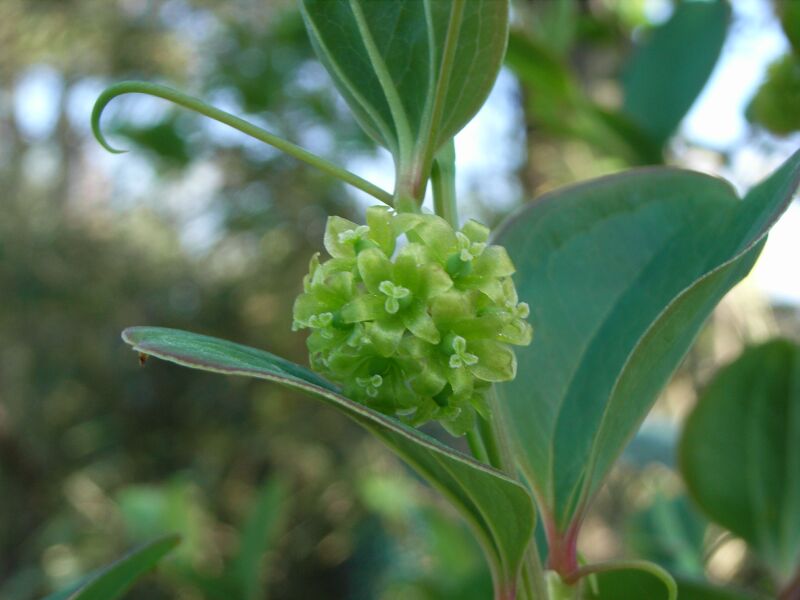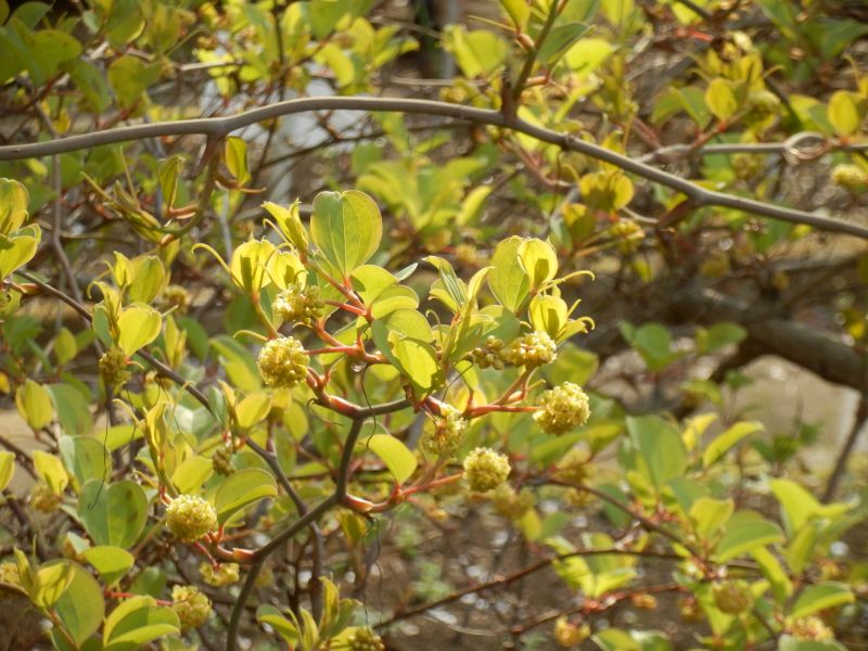 春に葉腋から散形花序を出して淡黄色の花を咲かせる。