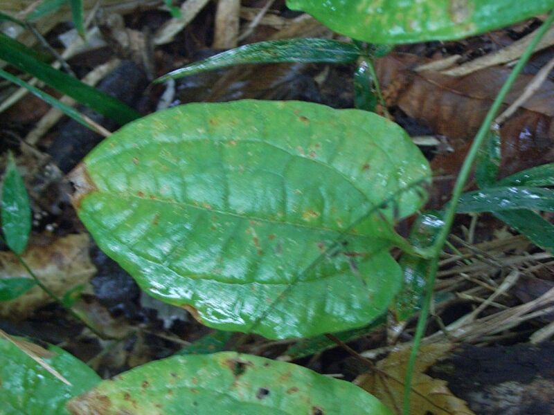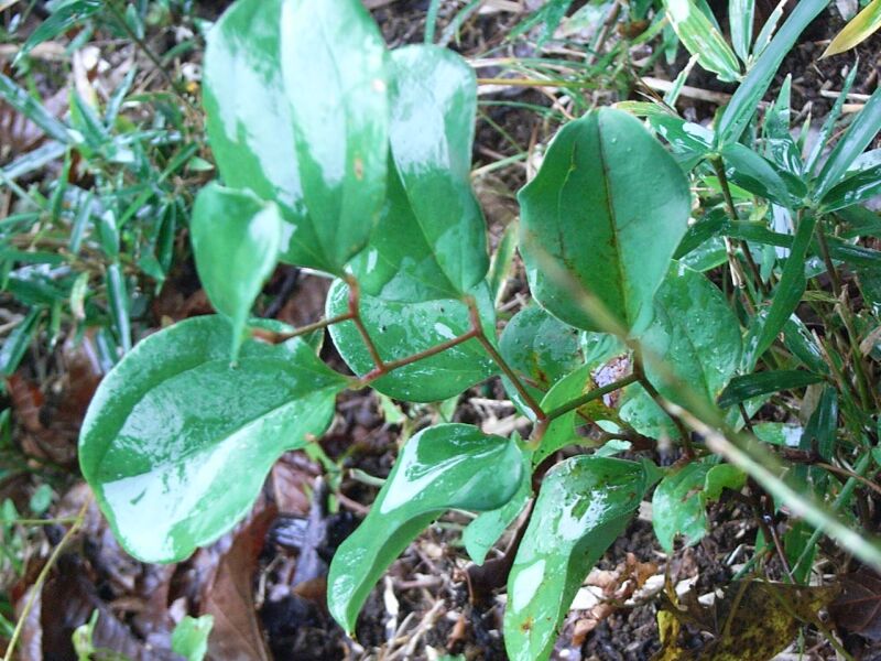 葉は3脈がはっきりしていて光沢がある。(2008/10/26)