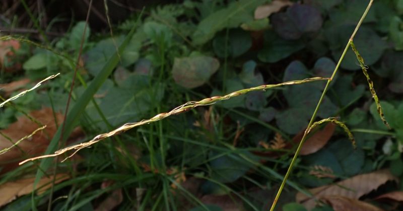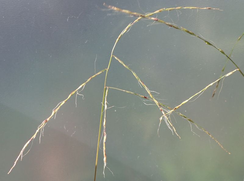 小穂は細長くて花序枝に密着し、ヨレヨレの長い芒を出す。
