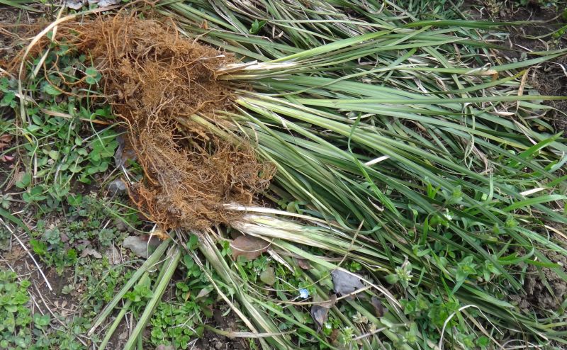 根茎は円柱状で、香気があり、分枝して群落を作る。