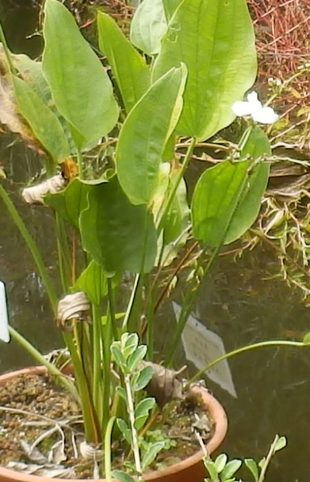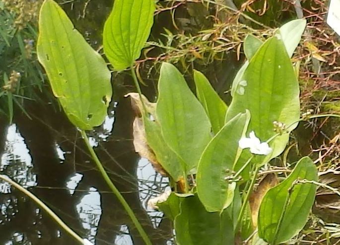 長い葉柄が束生し、長さ30〜70センチの先のとがった大きな楕円形の葉がつく。