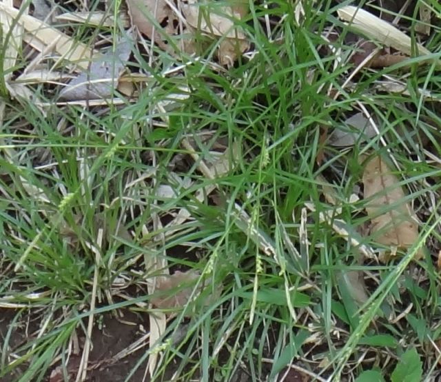 クサスゲ:葉は茎より長い、雄性の頂小穂は淡緑色で0.5〜1センチ、果胞は無毛。