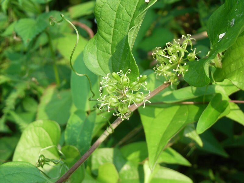 茎はつる状に長くのび、托葉の変化した巻きひげでからむ。