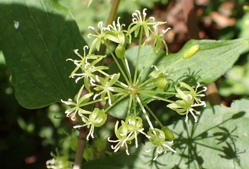 葉腋から散形花序を出し、淡黄緑色の小さい花をつける。